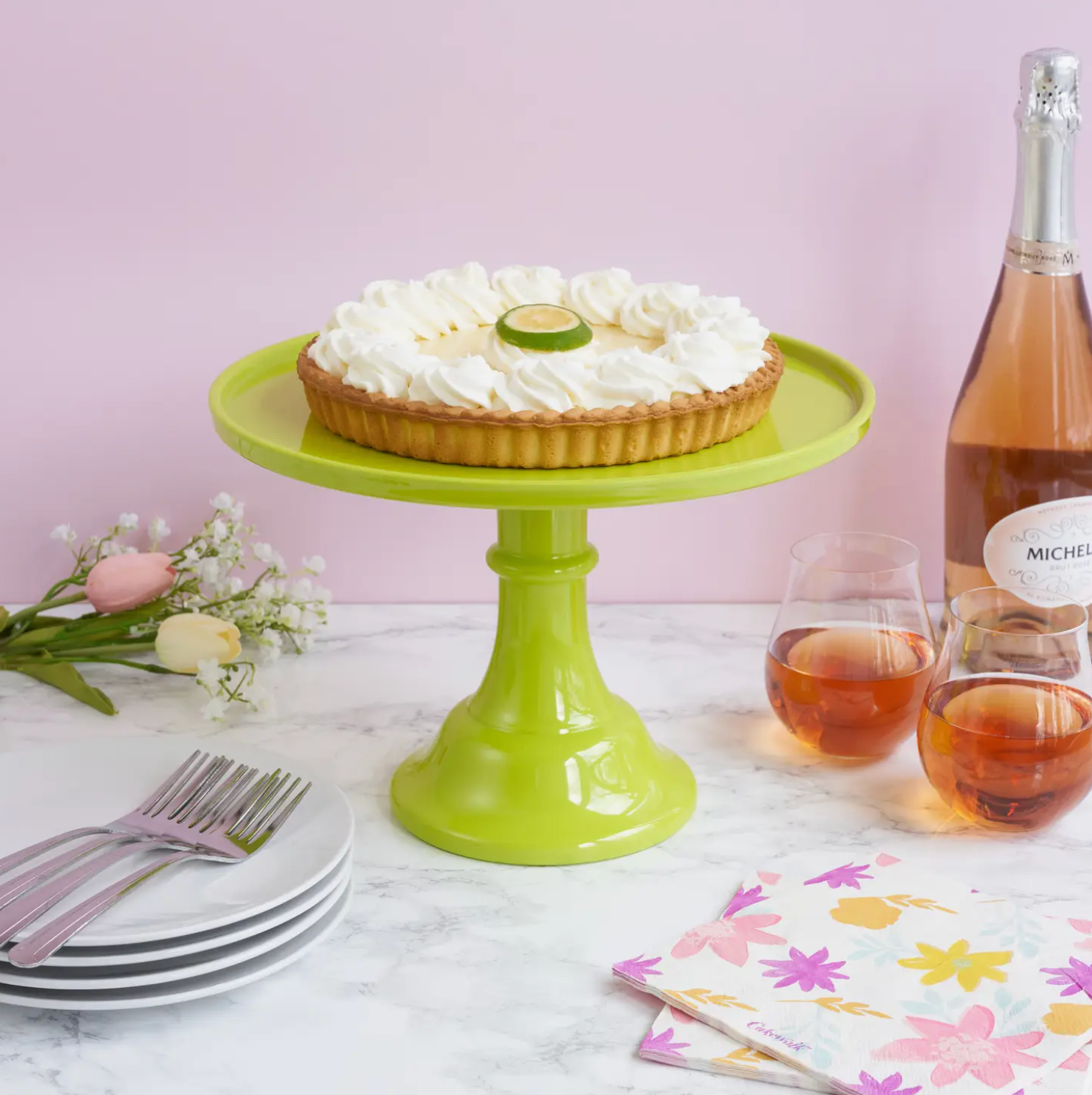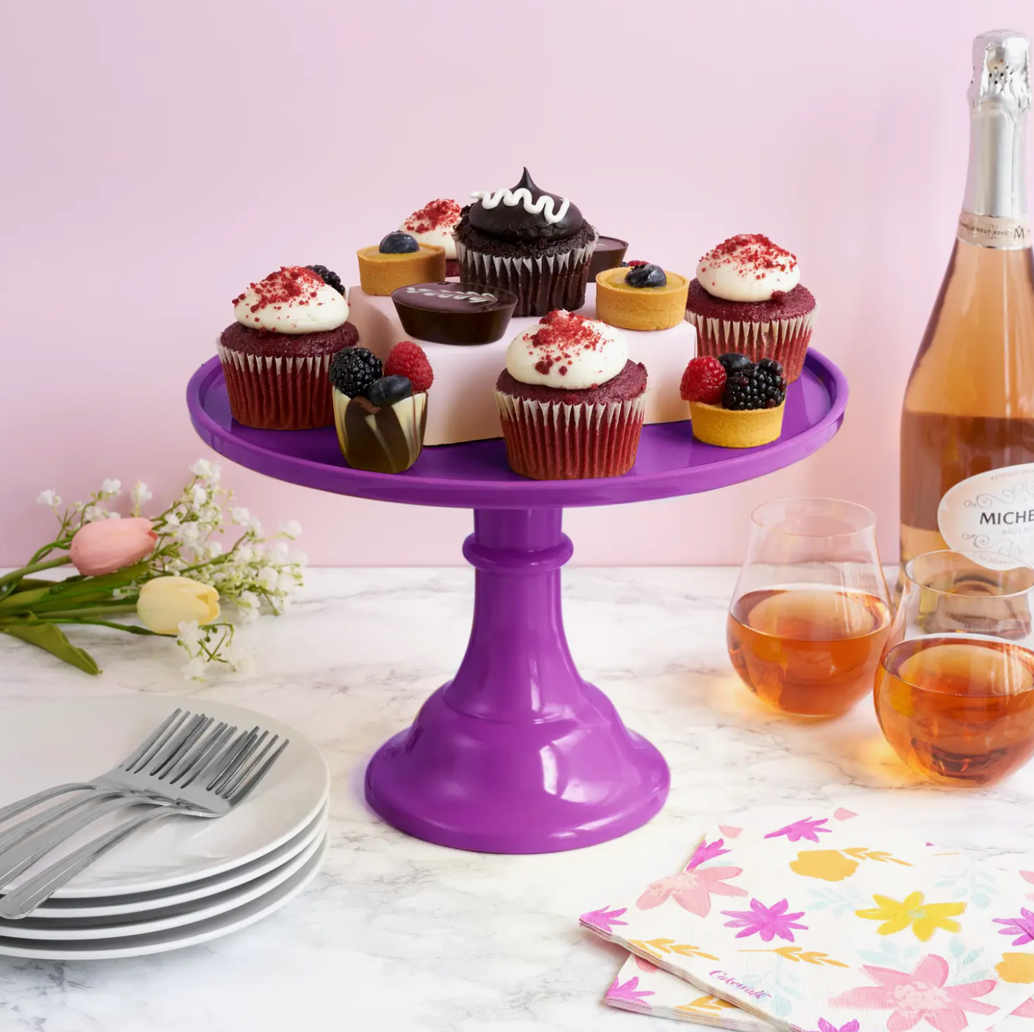 This colored melamine cake stand is perfect for showing off your sweetest creations.